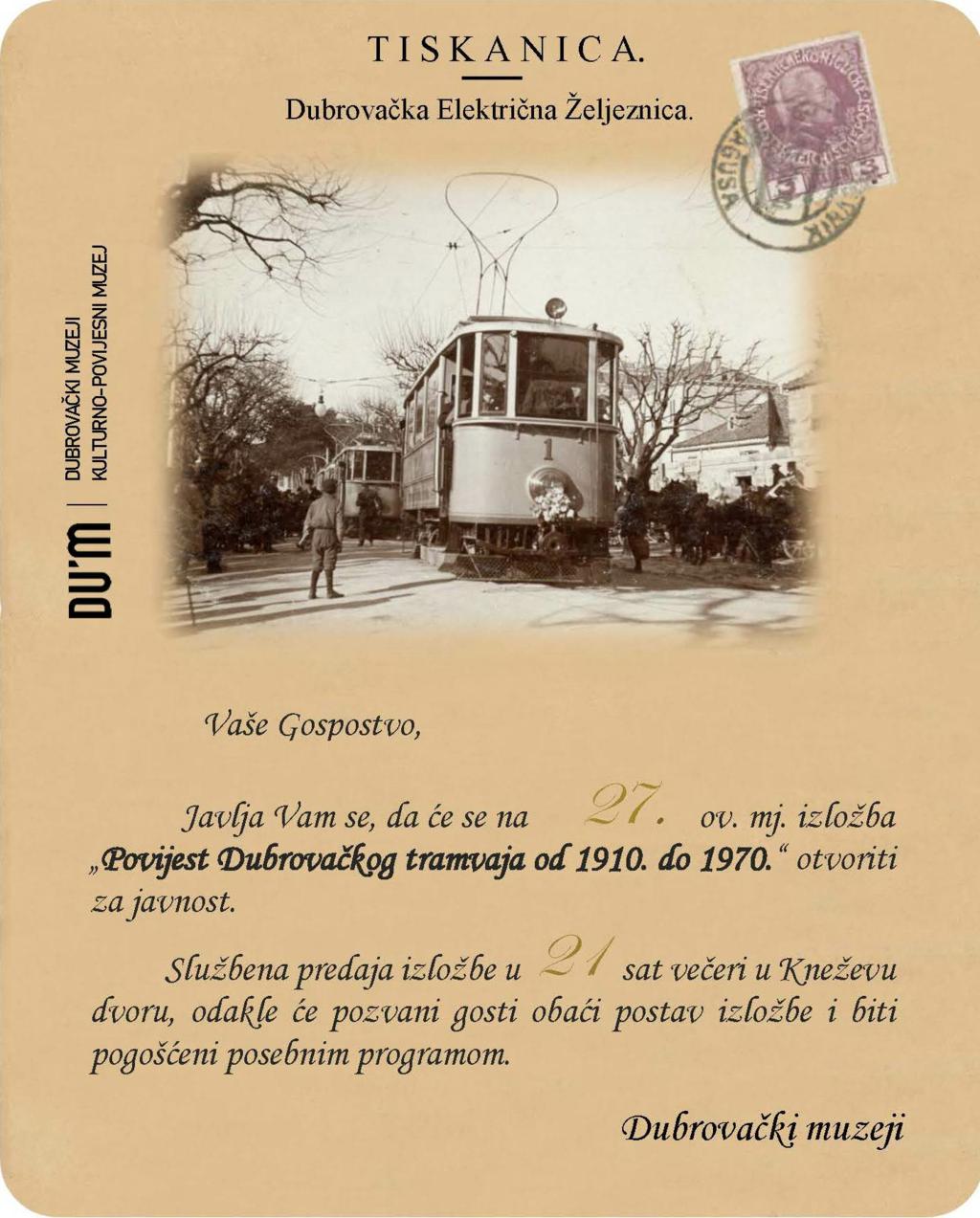 Povodom 115 godina od uvođenja dubrovačkog tramvaja u promet i 55 godina od njegova ukidanja, Dubrovački muzeji organiziraju otvorenje izložbe „Povijest dubrovačkog tramvaja od 1910. do 1970.“, koje će se održati u srijedu, 27. kolovoza 2025. u 21:00 sati u Kneževu dvoru. Autori izložbe su Dino Lokas, Tonko Marunčić i Jan Mark Novalija.