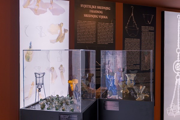 Primjena staklenih svjetiljki u prošlosti bila je vrlo česta. Njihovi raznovrsni oblici prvenstveno su odraz funkcionalnosti, ali i niza popratnih elemenata, od tradicije, ukusa naručitelja i religijske pozadine, do tehnoloških dosega i razine staklarskih vještina na određenom području. Izložba „Staklene svjetiljke kroz vrijeme“ zamišljena je kao kronološki presjek tipologije svjetiljki koje su od 1. do 19. stoljeća bile u opticaju na širem području Hrvatske. Odabrani materijal dočarava razne aspekte prisutnosti staklenih svjetiljki u životnoj svakodnevnici, uz dominantnu funkciju osvjetljavanja sakralnih prostora.